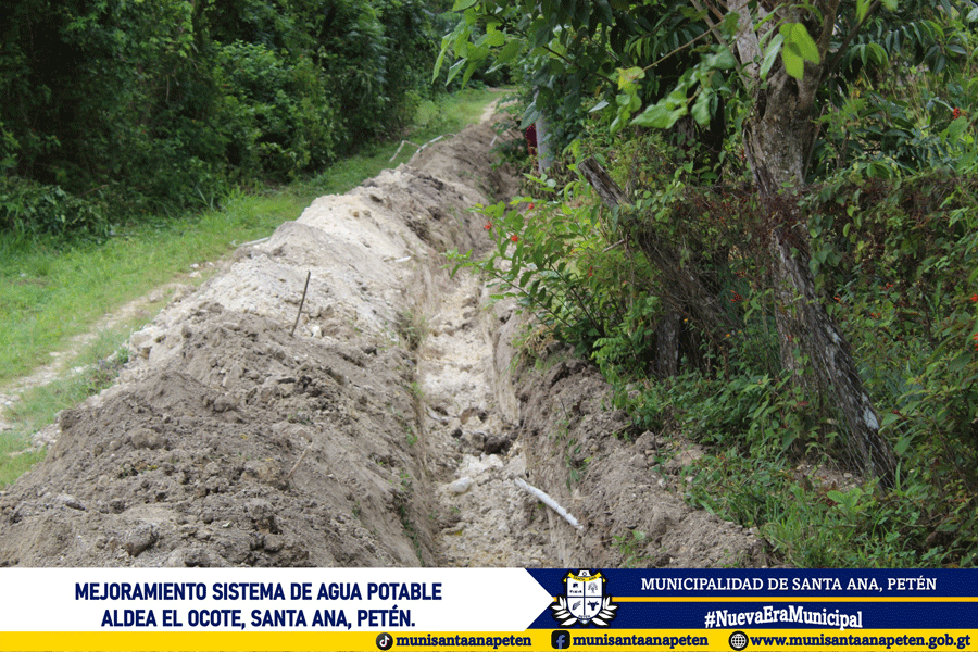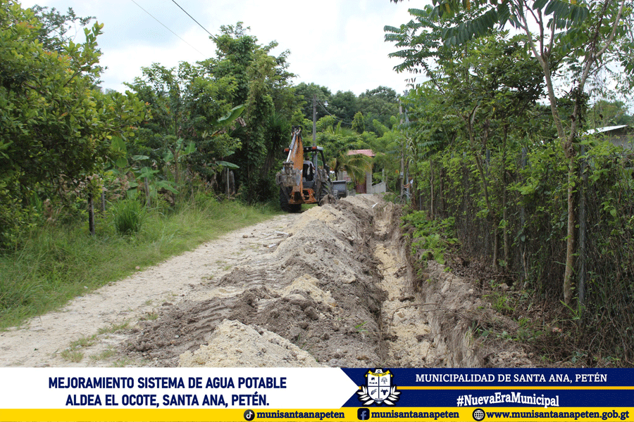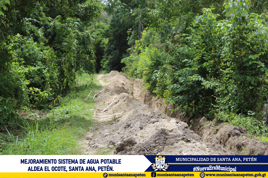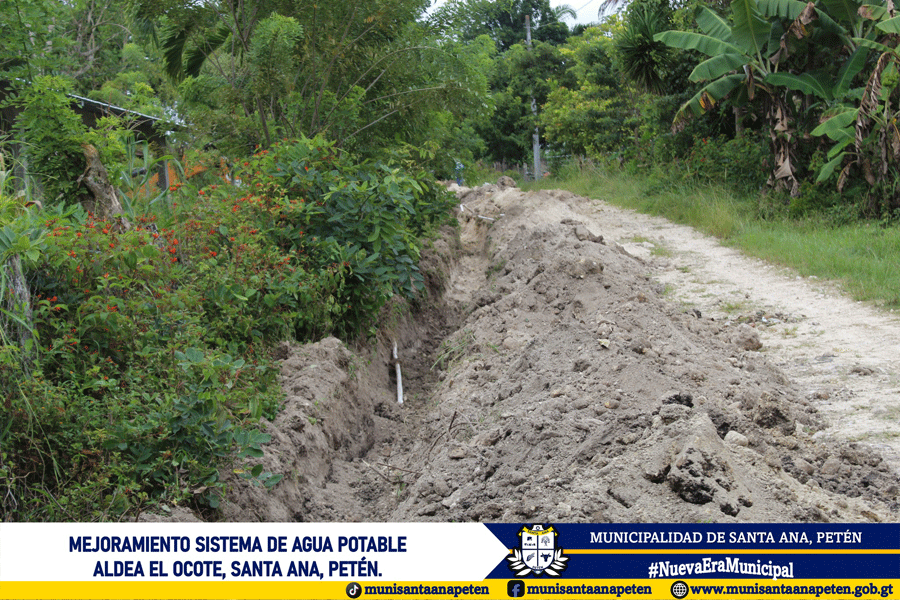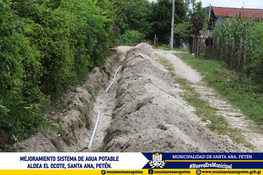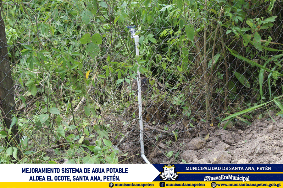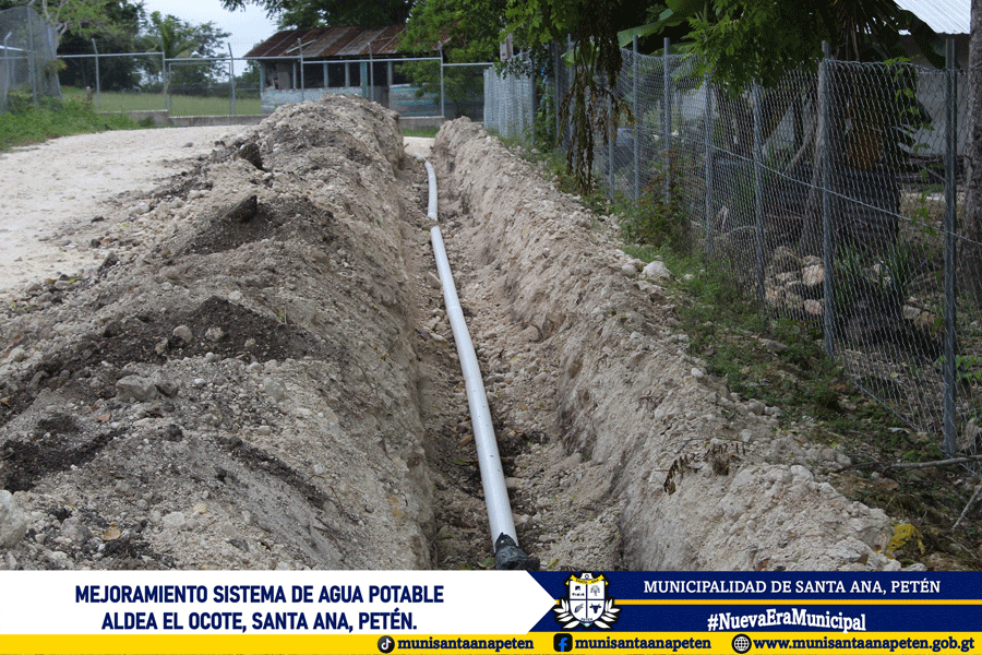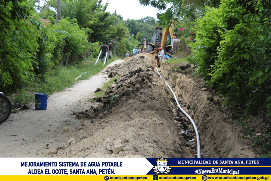 Avanzan los trabajos de mejoramiento del sistema de agua potable en la comunidad de Aldea El Ocote. Este importante proyecto contempla el cambio de 18 kilómetros de tubería en la red de distribución.