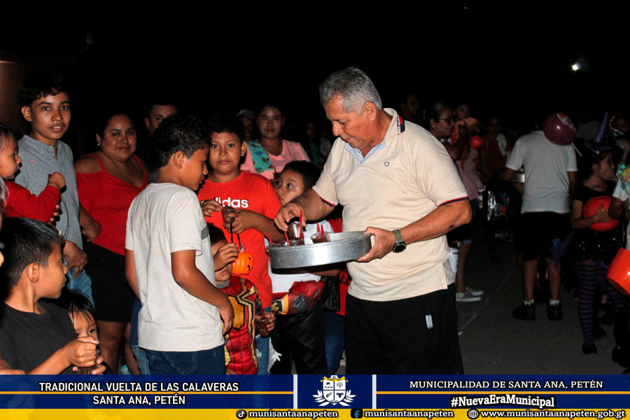 La noche de ayer, 1 de noviembre, se llevó a cabo esta hermosa tradición en la que, año con año, el Lic. José Antonio Romero Berges participa junto a un grupo de niños recorriendo las calles para pedir dulces, atol de Ixpasa’a, conservas y mucho más.