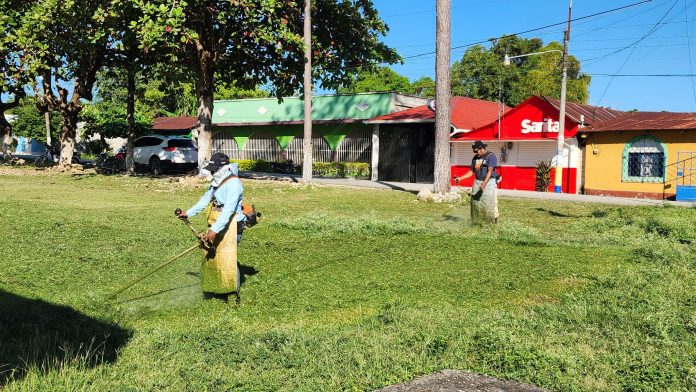 Entre los trabajos efectuados destacan el chapeo y la recolección de basura en los alrededores de la Plaza Central, así como en otros puntos importantes de nuestro municipio.