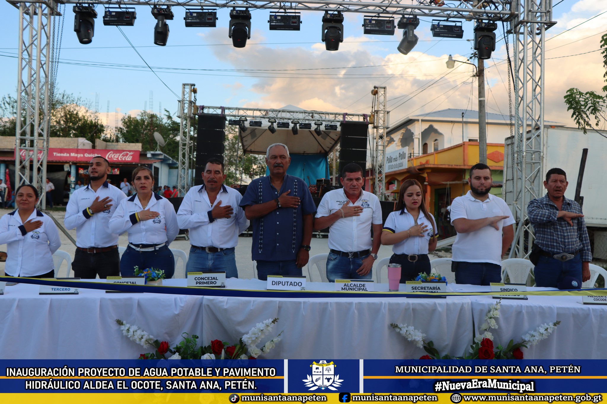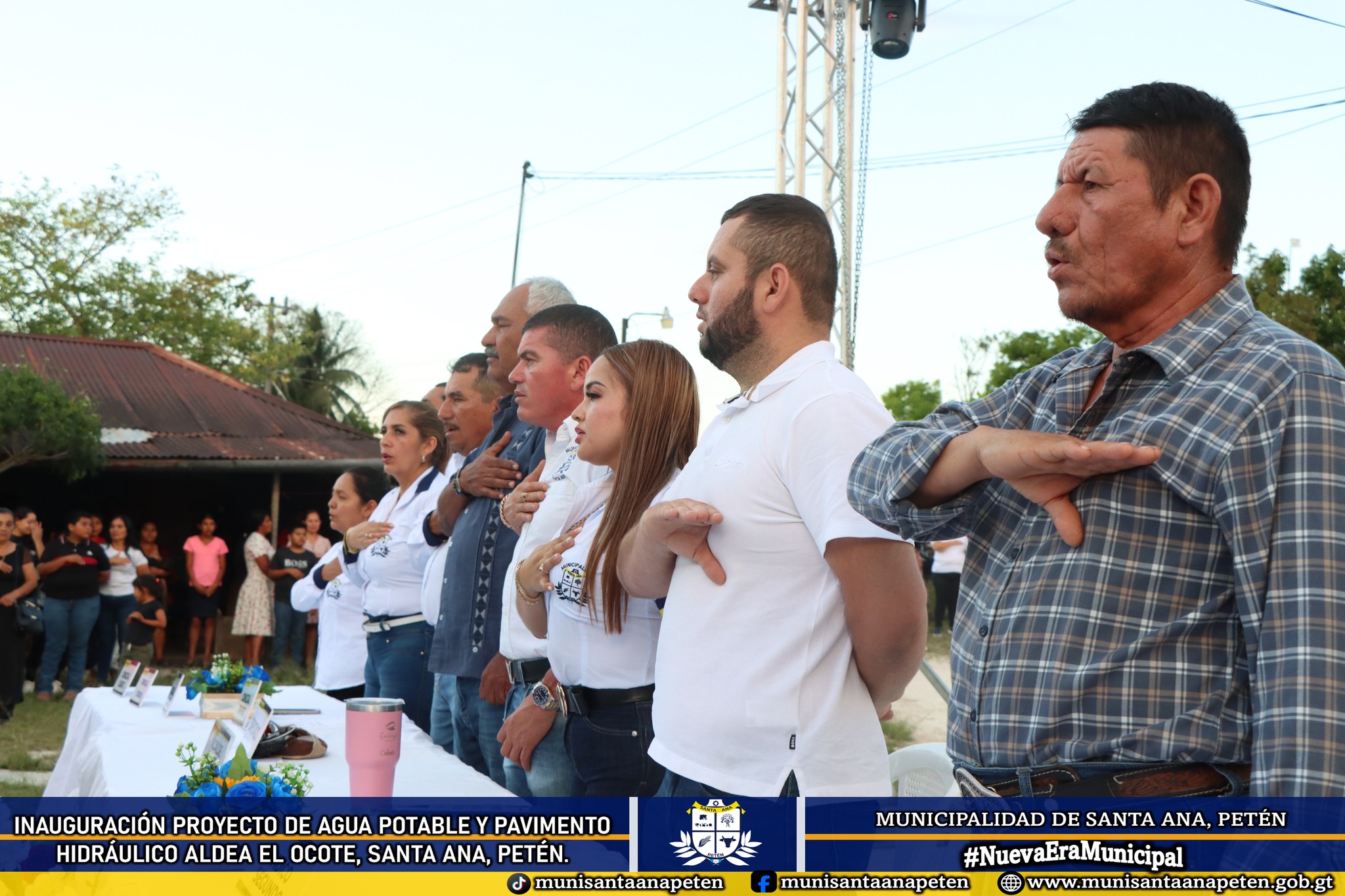 La tarde del viernes 10 de abril se llevó a cabo la inauguración y entrega oficial del proyecto de mejoramiento del sistema de agua potable y pavimento hidráulico en la comunidad, mediante un acto protocolario que dio inicio con una oración, como es tradición del Sr. Alcalde Municipal previo a cada actividad.